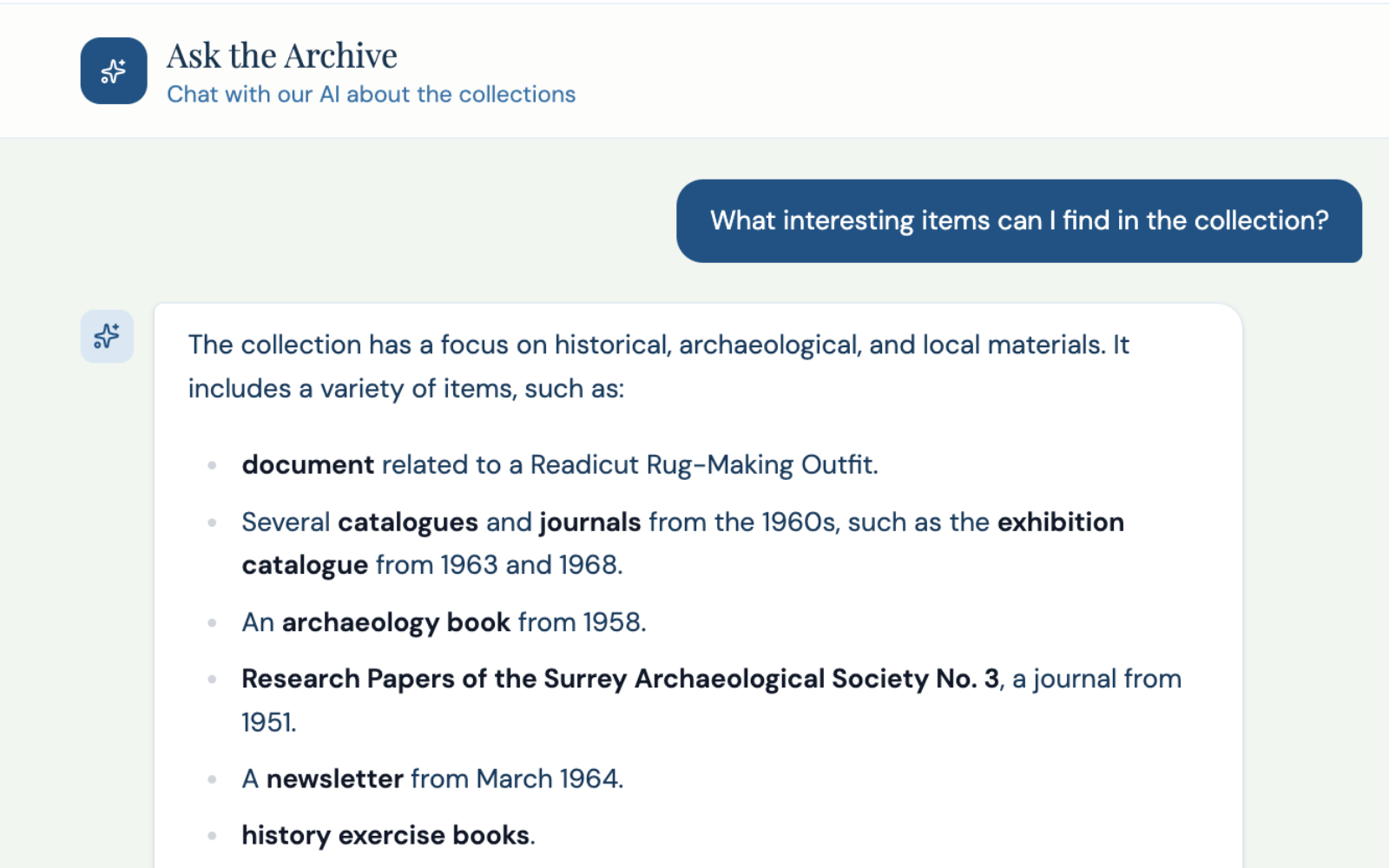 Most archive and museum catalogues were built for an earlier web — before mobile, before natural language search, before visitors expected to simply ask a question and find an answer. The result is collections that are meticulously preserved and almost impossible to explore. The knowledge is there. The interface is letting it down.